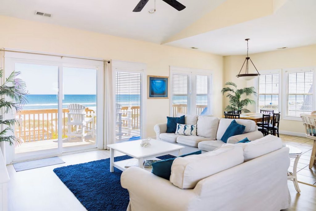 Our original beachfront gem featuring 4 bedrooms, spectacular 180-degree ocean views, and two levels of oceanfront decks. Perfect for families seeking the ultimate beach experience.