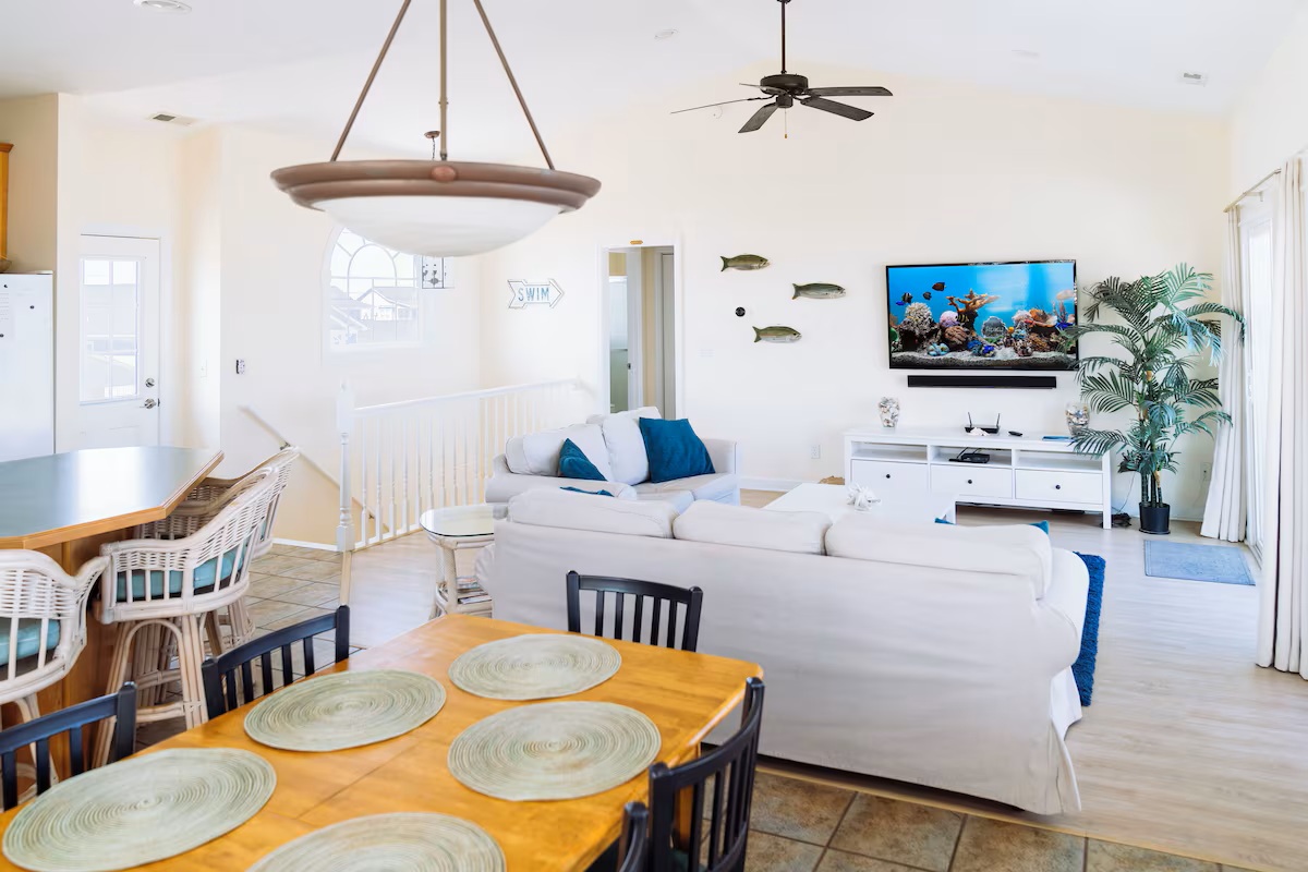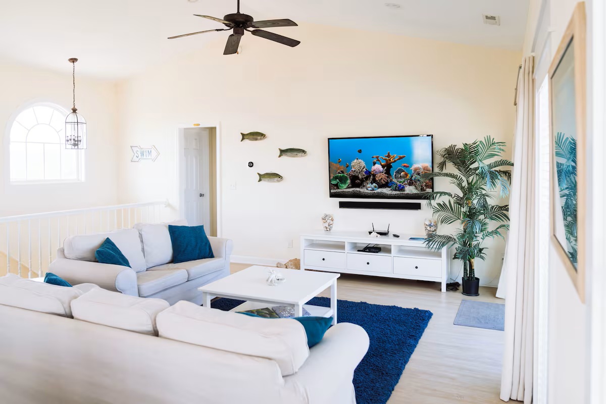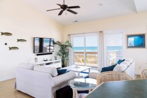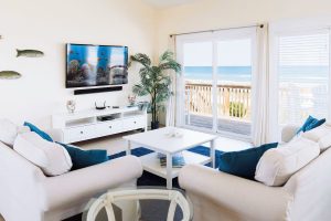 Freshly renovated and tasteful interior so your time inside will be as pleasant as your time on the beach. All 4 beachfront bedrooms have great beachfront/ocean views, 43 inch flat screen smart TVs & comfortable beds. Living room features 75 inch flat screen smart TV with sound bar & sub-woofer for great movie nights.